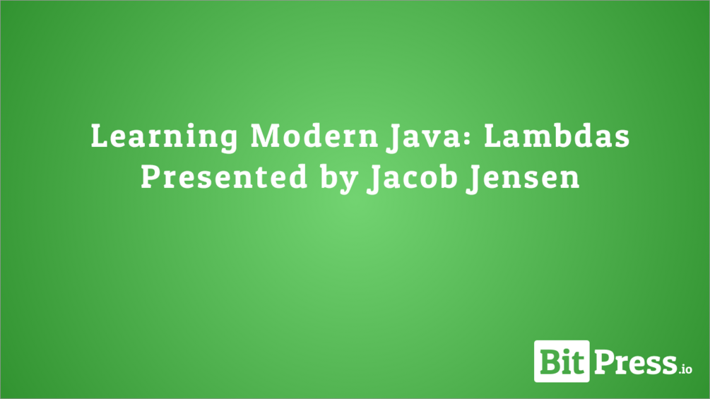 This series will get you up to speed on Lambdas, one of the most exciting features ever added to Java. If the lambda syntax is unknown, unfamiliar, or confusing to you now, then you are in the right place; by the end of this lesson you will know it like the back of your hand.